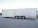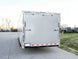 The 8.5-foot by 32-foot silver flat nose enclosed trailer comes with three 7,000lb greaseable axles for heavy-duty hauling. This trailer has a passenger-side entry door, build-in wall vents, and a spring-assisted rear-loading ramp.