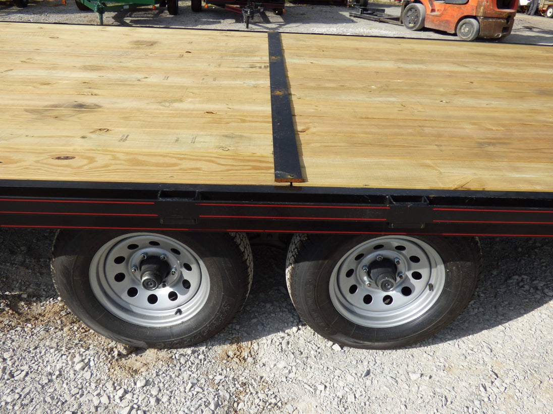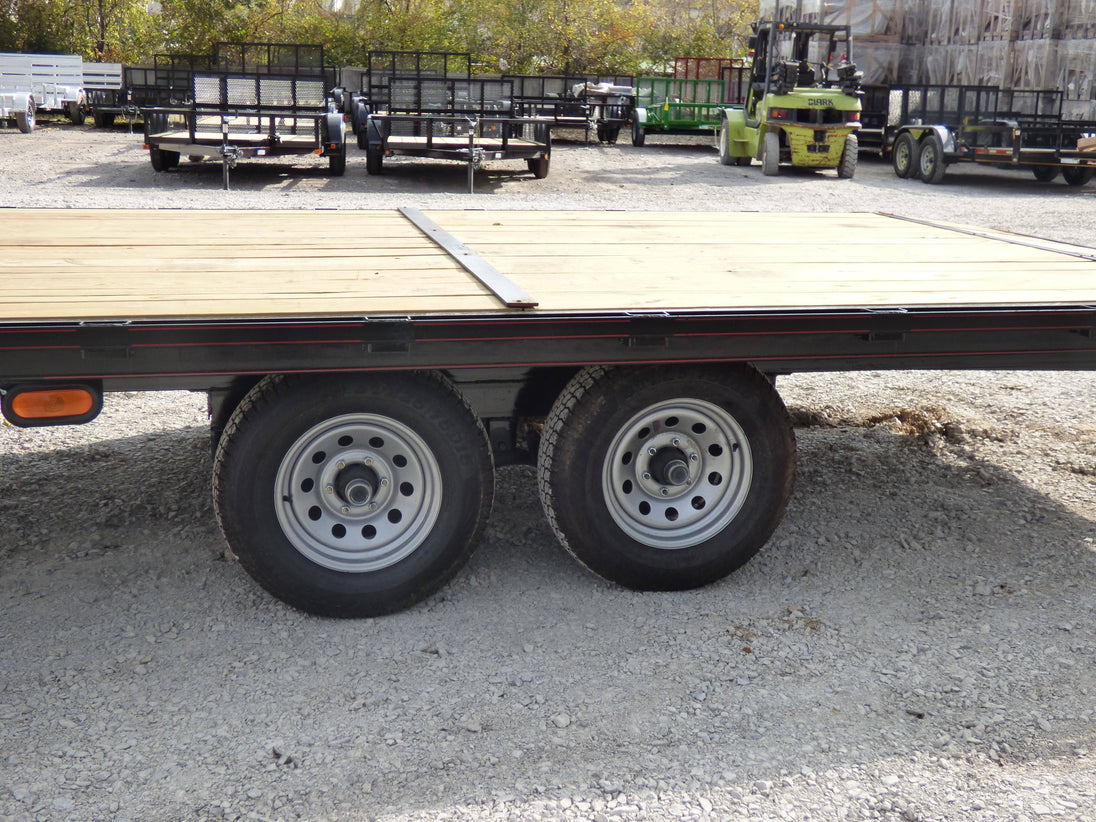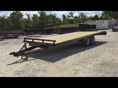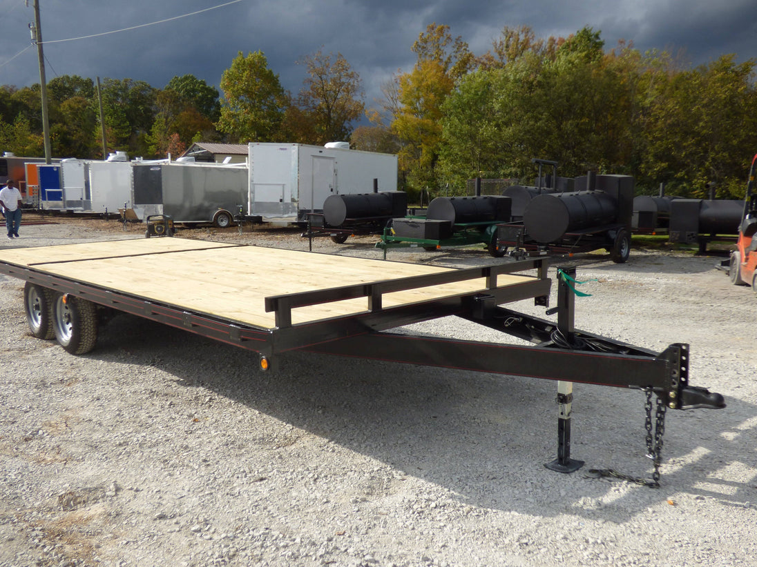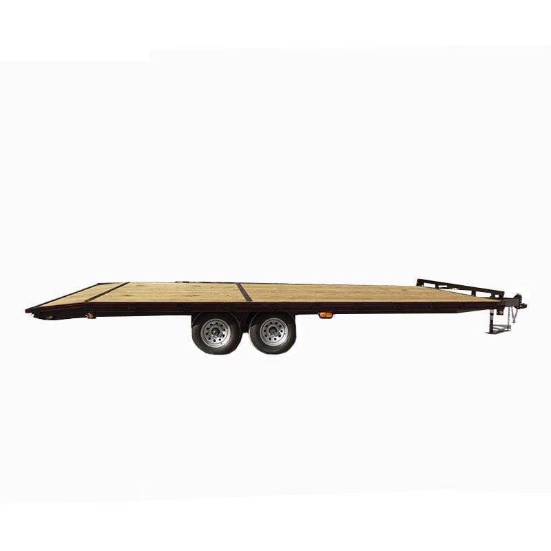 This 8.5 x 22 foot deck over trailer features 8 foot slide out ramps, adjustable couplet, heavy-duty jack and more.
