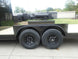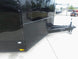 The 8.5-foot by 24-foot hybrid v-nose enclosed trailer is 16-feet of utility deck space and 8-feet of enclosed space with a black screwed exterior. This trailer comes with two greaseable 7,000lb axles and has one window on the rear with a door on the side of the enclosed.