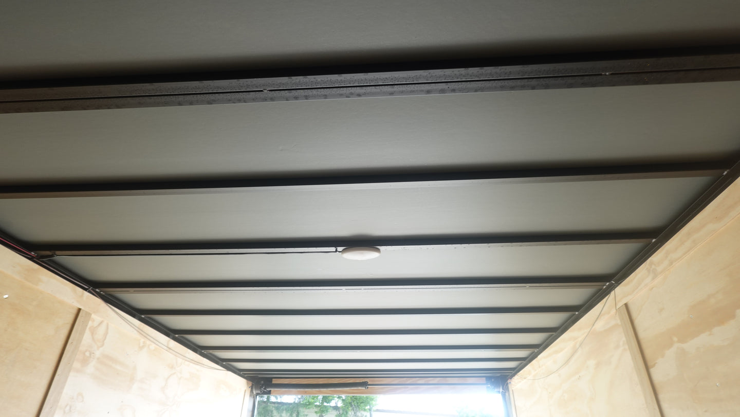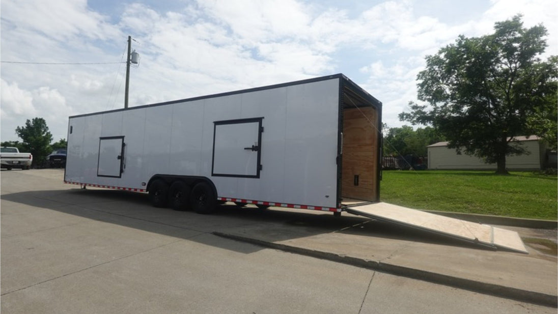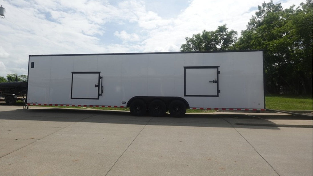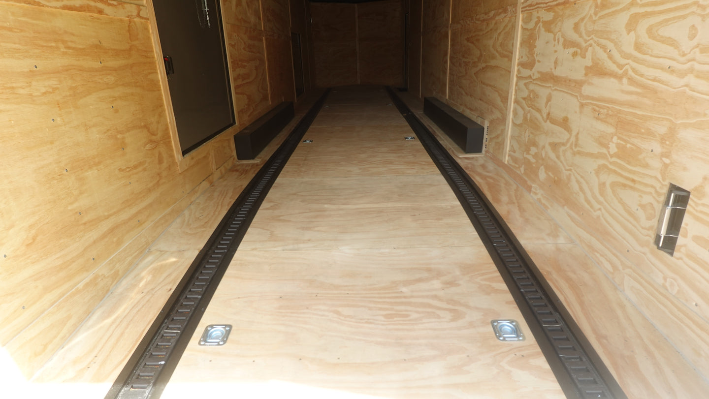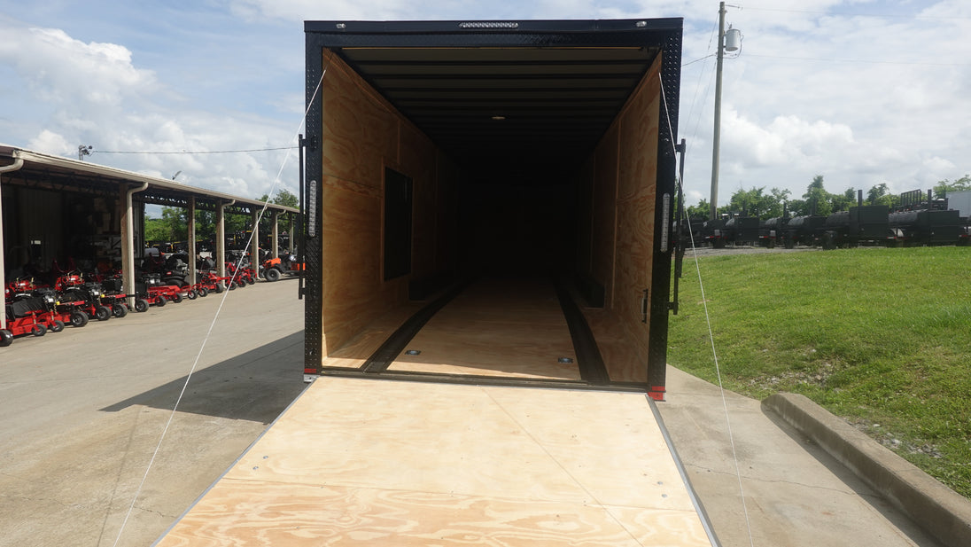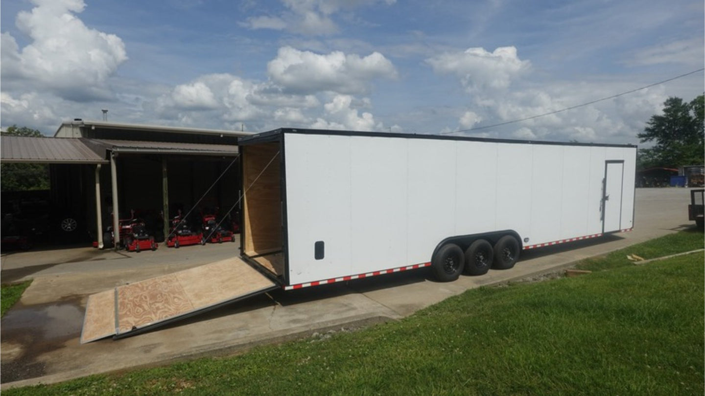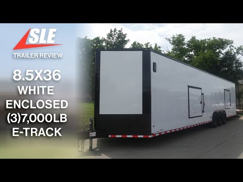 This 8.5x36 ft enclosed trailer features a clean white screwed exterior with a blackout trim package, delivering both performance and style. Designed with functionality in mind, it’s ideal for transporting vehicles, or equipment.
