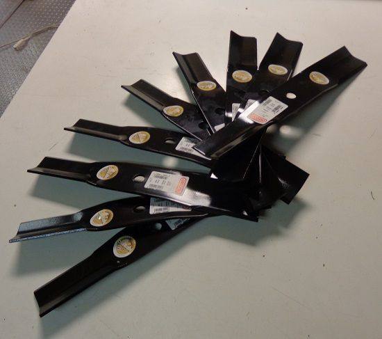 16-9/32 inch lawn mower blades. Fits an Ariens and Gravely lawn mower with a 3/4 inch hole. OEM numbers are Ariens 3027859, 30278, 03027800. Set of 9.