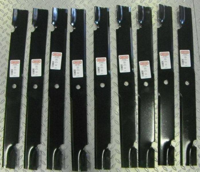 Set of 9, 24-1/2 inch lawn mower blades. Fits Toro Wheelhorse and Ferris Zero Turn lawn mowers with a 5/8 inch hole. OEM numbers are Toro 105-7784, FERRIS 48112 48113 481709