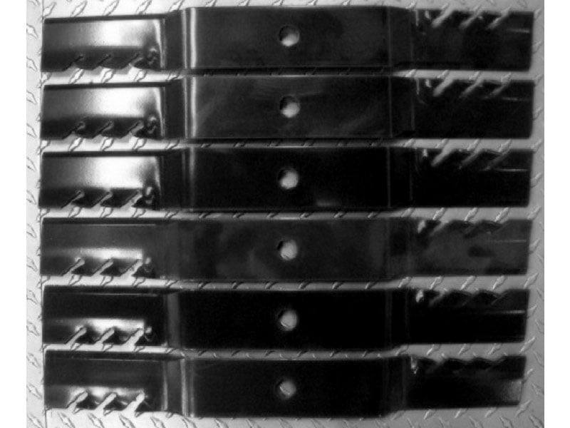 Set of 6 lawn mower blades for John Deere Zero Turn lawn mowers with a 13/16 inch hole. Oregon part numbers are 90-477 and 96-377 OEM part numbers are John Deere M127500.
