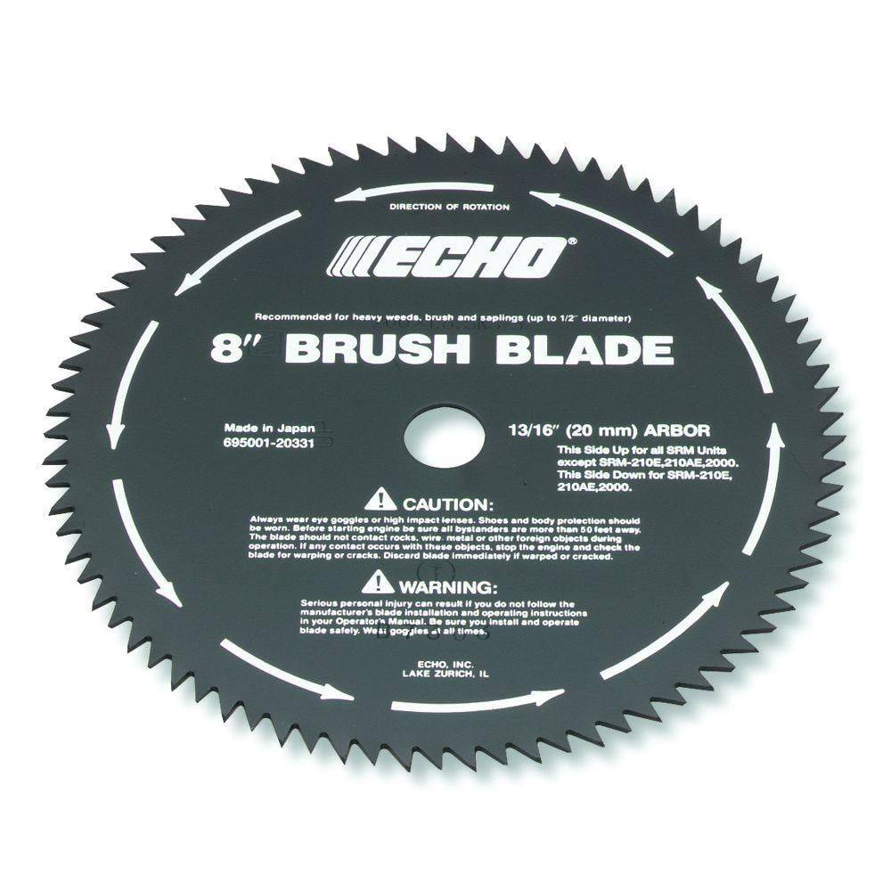 This Echo 69500120331 brush cutter blade is 8 inches in diameter.