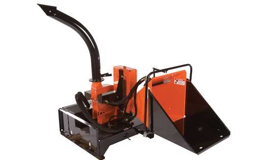 The Bear Cat CH500H is a chipper skid steer attachment that can handle wood up to 5 inches wide, is available in both standard/high-flow and high-flow models and is powered by the skid steer's hydraulics.