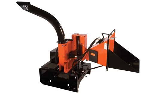 The Bear Cat CH800H is an chipper that attaches to a skid steer and can handle wood up to 8 inches.