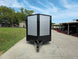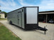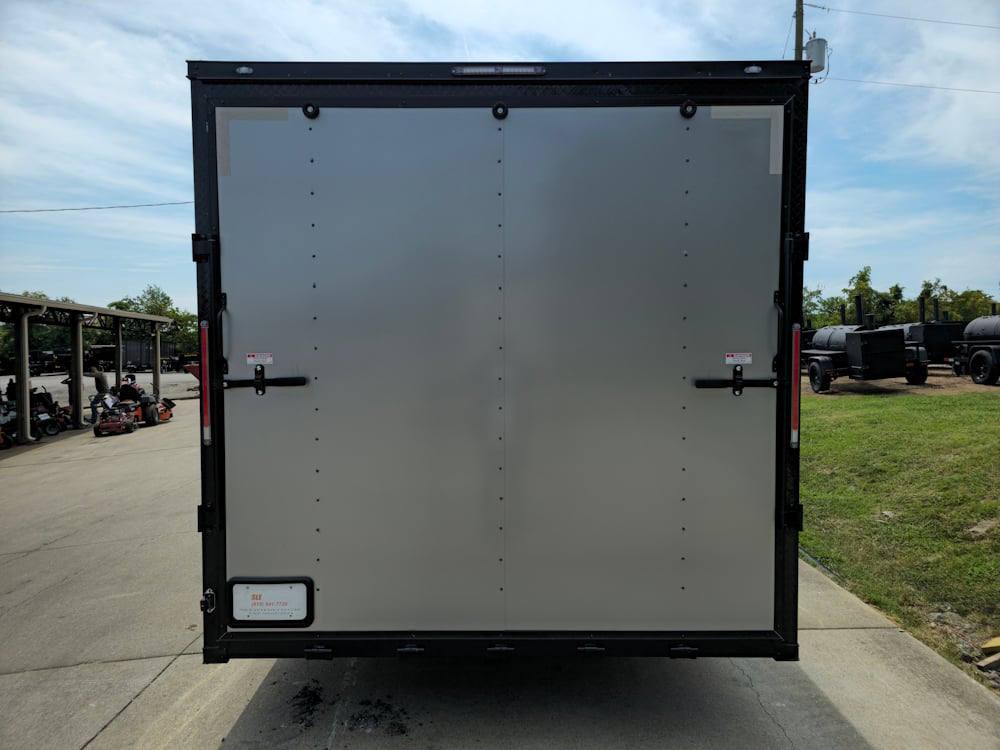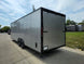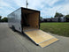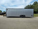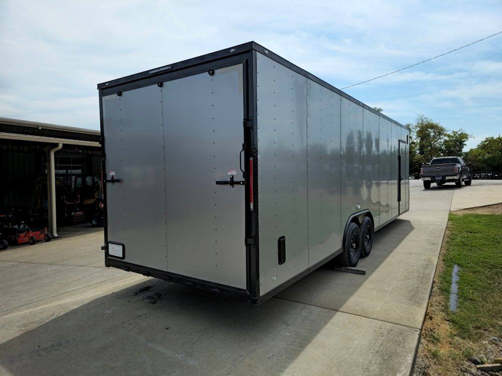 Spacious 8.5x28 Silver V-Nose Enclosed Trailer: A premium 8.5x28 enclosed trailer with a sleek silver V-nose design, offering superior aerodynamics, enhanced maneuverability, and a modern, professional appearance.