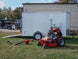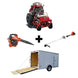 This package includes a Ferris SRS Z1 36" 19HP Kawasaki stand-on mower, Echo PB-225LN handheld leaf blower, Echo SRM-225 string trimmer, and a 6 foot by 12 foot v-nose enclosed trailer.