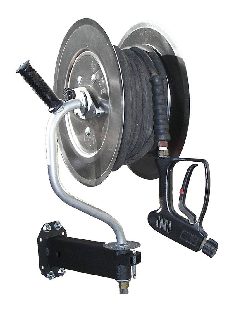 The best hose reel on the market, Made in USA. Finally a stainless steel hose reel for about the same cost as a painted reel. This reel is built to stand up to years of use and the industry standard mounting foot allows you to mount it almost anywhere. Fluid path and mounting foot are zinc plated steel.