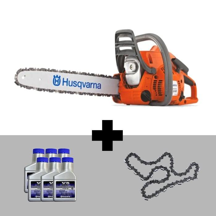 This Husqvarna 240 Chainsaw is ideal for pruning and hobby work. Weighing in at 10.3 pounds and featuring a 2 hp 38 cc engine it is the chainsaw to get the job done! Includes extra chain and Husqvarna 6-pack 2.6 oz. bottle oil.