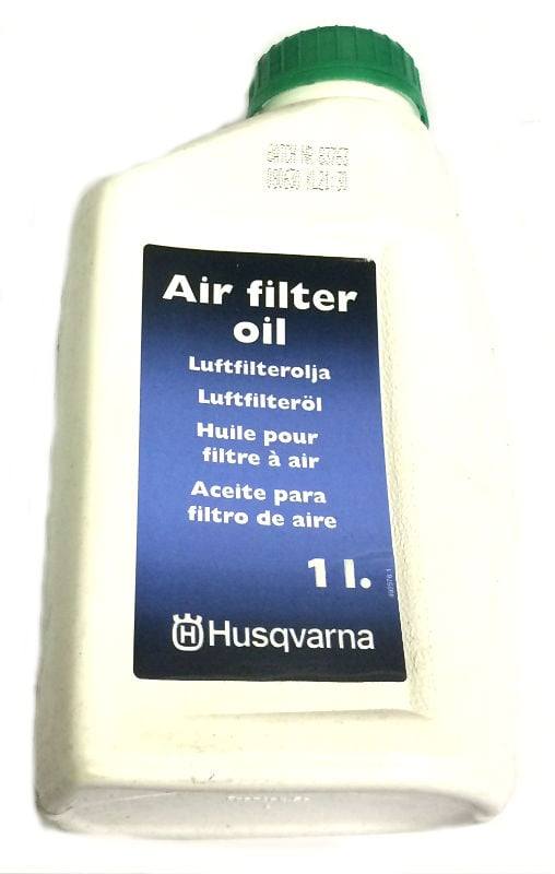 A bottle of Husqvarna 531009248 air filter oil which provides efficient binding and collection of unwanted particles in the filter.