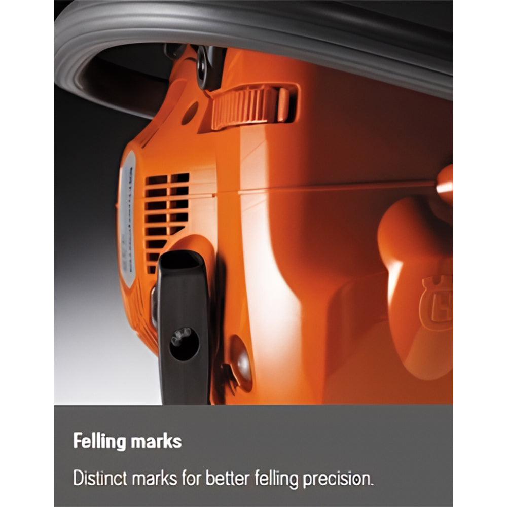 Permanent Felling Sight: Molded into the saw for precise and long-lasting accuracy when cutting trees.