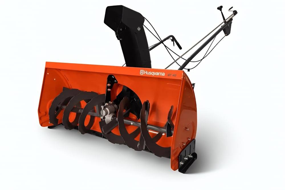This snow thrower features a 42" electric lift with one-button operation for easy adjustments and can be removed without tools after the initial bracket installation. It boasts two 12” serrated input augers and a high-speed impeller that expels snow through a durable poly chute. With adjustable discharge chute and deflector pitch, and a lift range of 2" to 4.5", it ensures precise snow control and durability, fitting all Husqvarna tractors from 2006 and newer models, and is backed by a 2-year warranty.