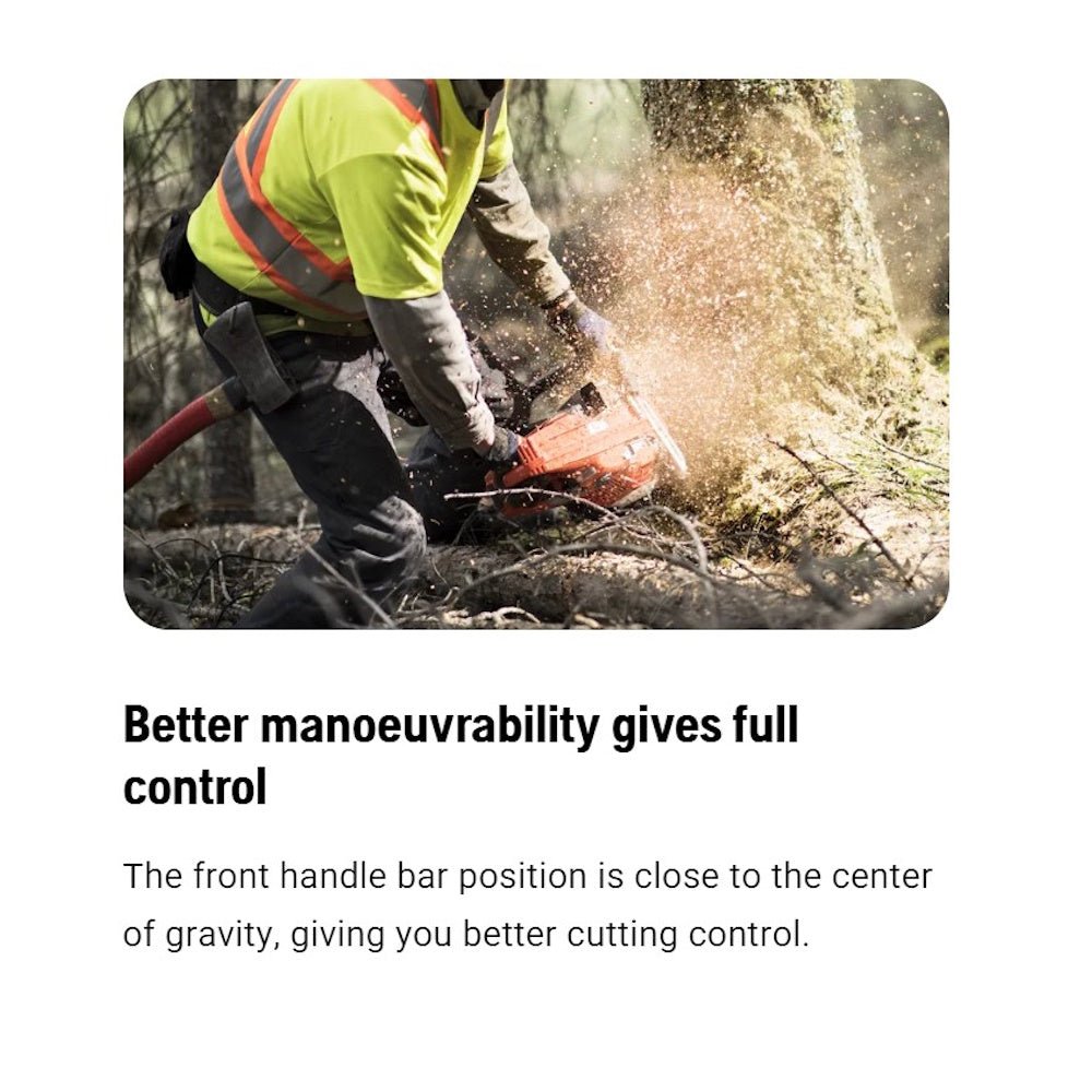The Husqvarna 565 24" chainsaw with .050 gauge chain offers a high-output 70.7cc X-Torq® engine for pro-level forestry work. With AutoTune™, Air Injection®, and chip-ejecting clutch cover, it delivers power, precision, and long-term durability in a balanced, low-vibration design.