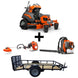 This Husqvarna equipment package deal includes a 525L string trimmer, 350BT backpack blower, a 5 x 10 utility dovetail trailer, and the Husqvarna V554 stand-on mower with a 24.5 hp Kawasaki engine.