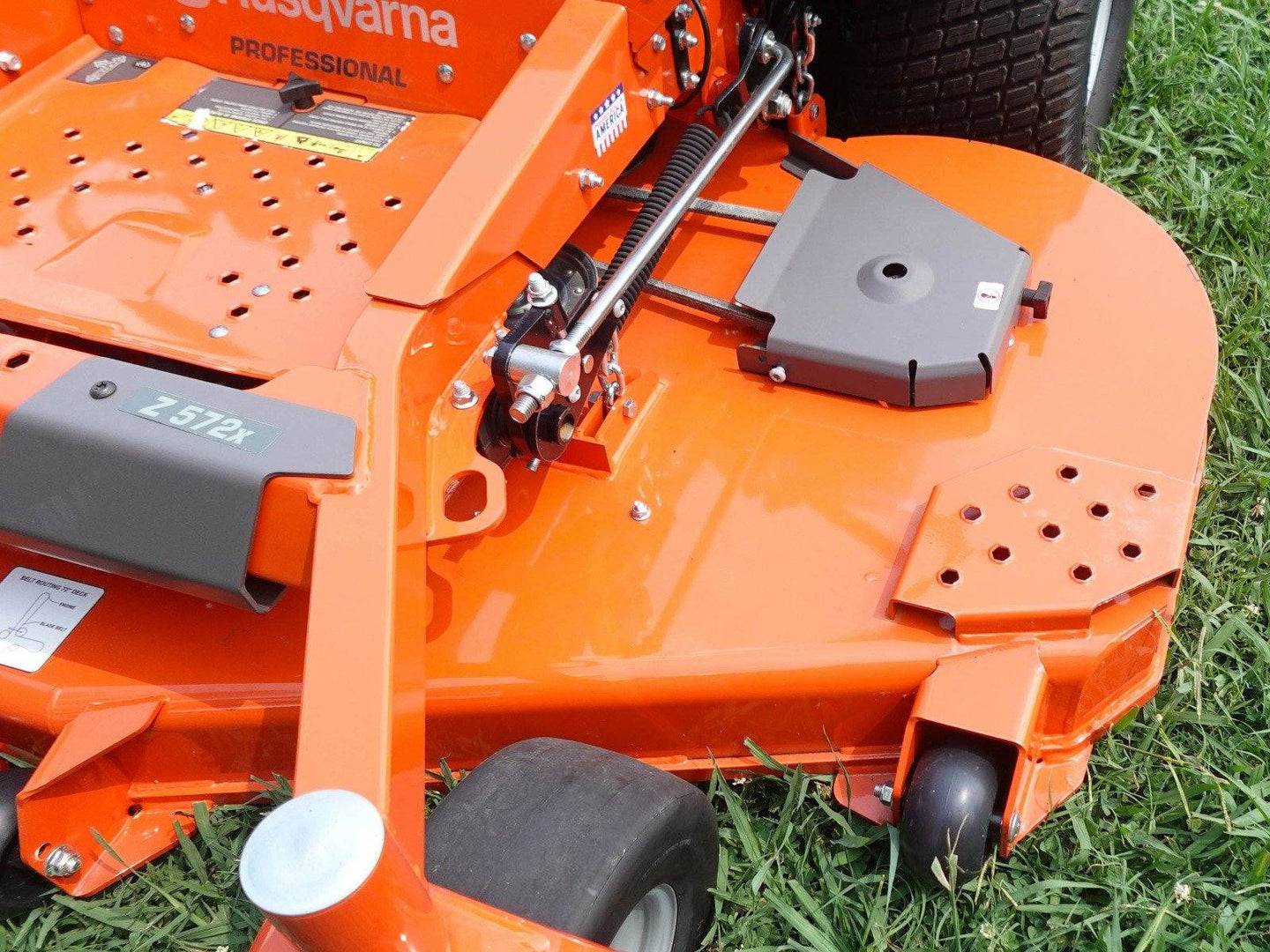 The Husqvarna Z572X zero-turn mower features a fabricated 72-inch deck and is powered by a 31-horsepower Kawasaki engine. The Z500X series represents the ultimate in high-performance drive systems and high-productivity cutting deck designs. (1939)