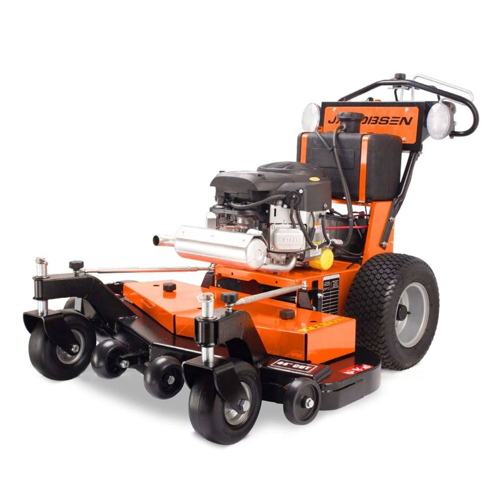 This Jacobsen 1836D walk behind lawn mower offers an 18 horsepower Briggs & Stratton engine, several convenient service points, and a light kit.