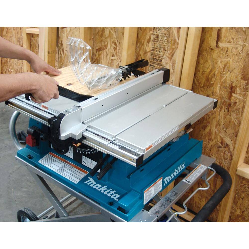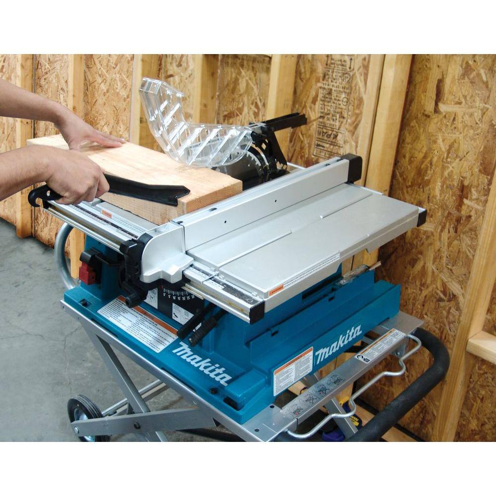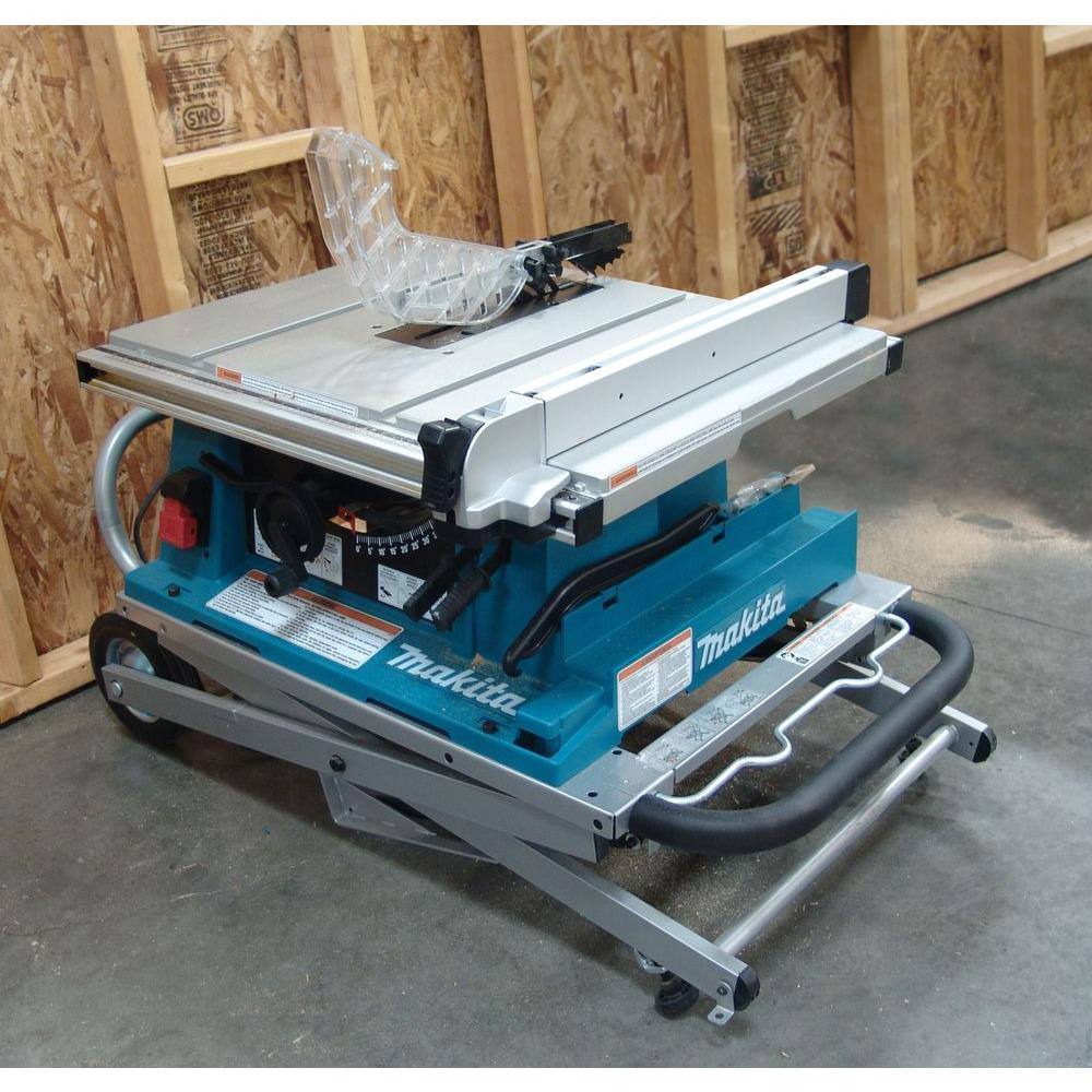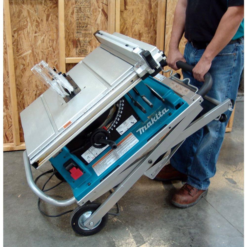 This Makita 2705X1 10 inch Contractor Table Saw Comes with a stand. This product is a precision machined table top for accurate cuts.
