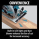 • Two built-in L.E.D. lights illuminate the line of cut for increased accuracy