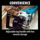 This Makita DA4031 1/2 inch angle drill can handle steel up to 1/2 in. thick and wood up to 4-5/8 in. at difficult angles with its Sidewinder handle that rotates 90 degrees left or right. The powerful 10 Amp motor offers precise variable speed control across 2 ranges, 0 - 1,200 RPM and 0 - 300 RPM.