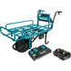 The Makita XUC01PTX2 18V X2 LXT® Lithium-Ion Brushless Power-Assisted Flat Dolly is a convenient solution for material transport on job sites. For versatility and convenience, the wheelbarrow is reversible with side rails on the flat bed for easy up and down installation.