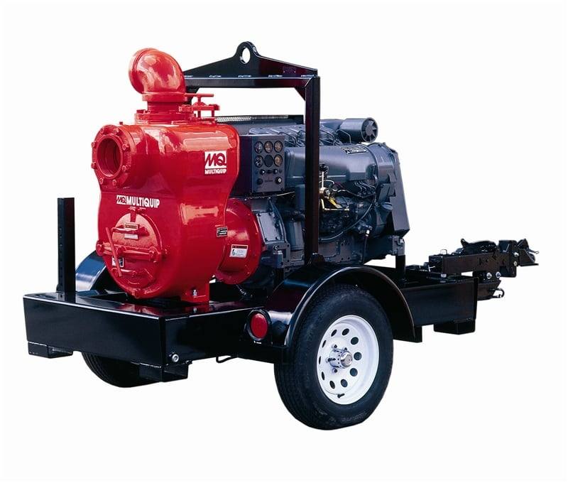 Multiquip MQ600TD80-TLRB Trash Pump offers high performance to tackle the most demanding jobs and comes with a TRLR600B Trailer, Pintle Hitch and 60 HP Deutz Engine. It includes an oil-filled mechanical seal and shaft bearings, and a durable cast iron volute and Impeller with removable stainless steel wear plate.