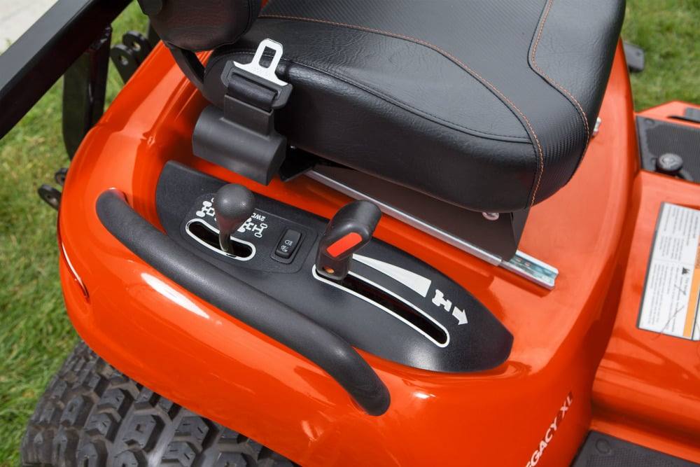 The Simplicity Legacy XL mower features a 61 inch deck and a 31 horsepower Vanguard Big Block V-Twin engine. Dependable features have been integrated into this mower's design such as the fabricated steel mower deck, the convenient utility light, and comfortable high back seat with armrests.