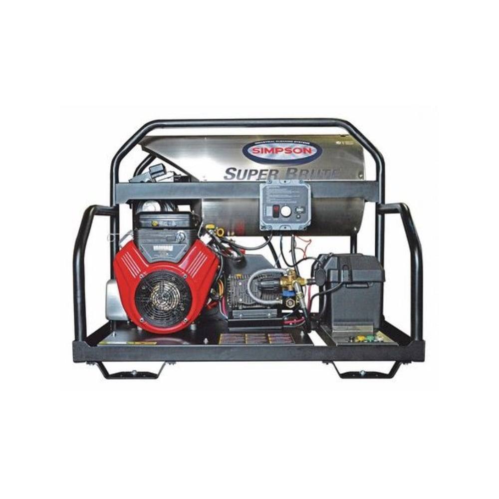 This is a Simpson Super Brute, model number SB3555, hot water washer pressure that has a VANGUARD™ V-Twin E-start engine with low oil shutdown. Designed for performance, this pressure washer powers through industrial cleaning applications. Industry experts rely on the Super Brute for enhanced cleaning power and efficiency.