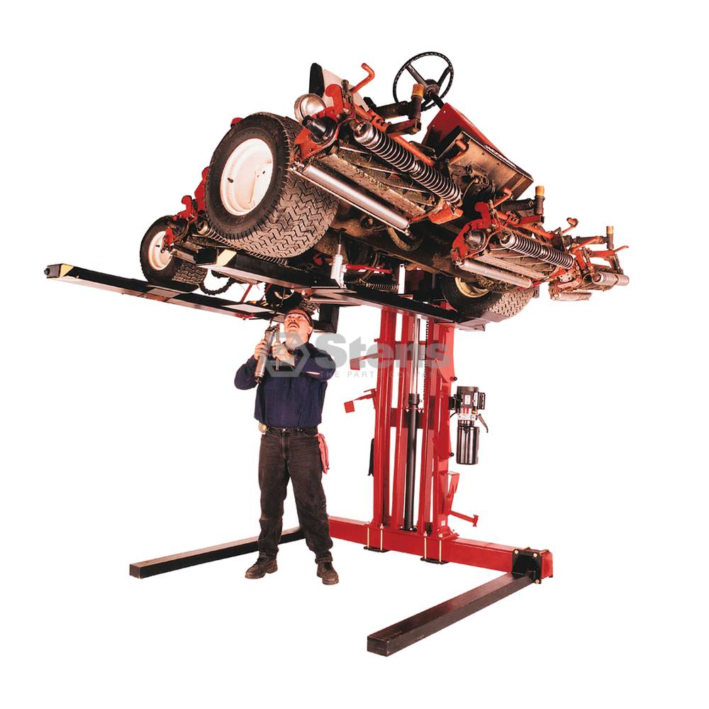 Specifications: Heftee customers report technicians increase their job efficiency a minimum of 20-30% with a Heftee lift. Labor recovery rates increase. Heftee customers report technicians increase their job efficiency a minimum of 20-30% with a Heftee lift. Labor recovery rates increase.Heftee owners report anywhere from 20-50% productivity improvementIncludes XL4000 workstation, 4 wheel cups, 2 wheel cup extensions, 2 loading ramps, 2 telescoping bridge channels, 2 tie down straps, 1 owner/operator manual, 1 fork adjustment wheel, 2 Heftee extension arms,1 tool parts tray, 1 standard axle jack, 1 standard pan jack, 1 swinging boom, 1raising boom bracketLift up to 4,000 lbs., 87 inch wide equipment, to six feet into the air, in secondsLifts are designed, built and tested to four times their rated load capacityManufacturer's warranty applies. To ensure tool accuracy and personal safety, do not attempt to repair tools under warrantyNo special installation or wiring requiredThe freestanding design allows the lift to be positioned in the shop where it's neededThe Heftee 4000 is ideal for commercial and golf course turf equipment and utility vehiclesWe specialize in equipping technicians with special attachments to safely and conveniently remove wheels, engines, transmissions, with the equipment on the lift, and to support front and rear mount at