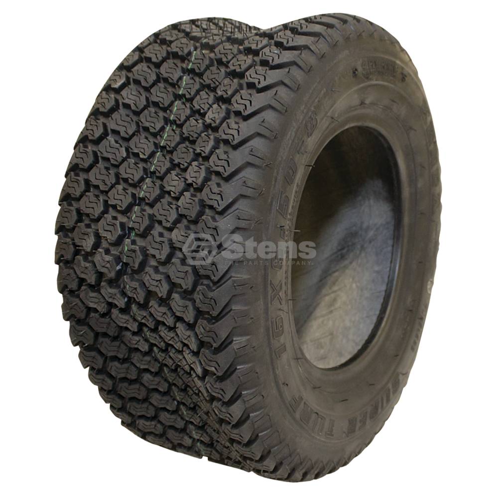 Specifications: Tread: Super Turf Tread Super Turf Tire Size 16x6.50-8 Ply 4 Max PSI 28 Max Load Capacity 620 Type Tubeless Rim Size 8"K500Designed to meet the demands of the outdoor power equipment industryTread designed for variety of terrainProvides the greatest amount of traction with the least amount of turf damageThe best turf and garden tire on the marketHas more rubber on the contact surface, which equates to enhanced puncture resistance and longer tread lifeProvides "everything you want and more" in a lawn and garden tire
