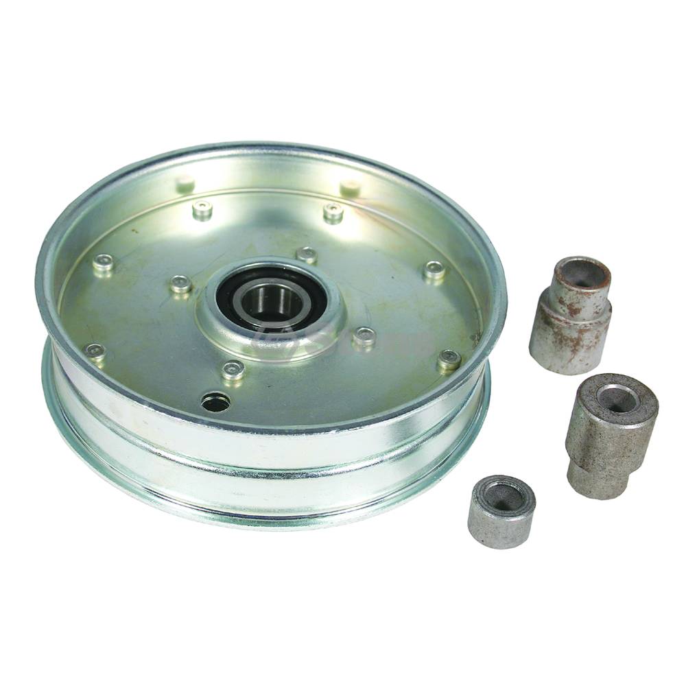 Specifications: Height: 1 7/16" Height 1 7/16" ID 3/8" OD 5 1/4" Material Metal Heavy Duty TRUEFor explanation of letters, refer to the drawing by clicking on More Info Idler B 5" Idler E 1" Made By An OEM SupplierIncludes 3/8" offset, 3/8" flush and 1/2" offset reducer bushings