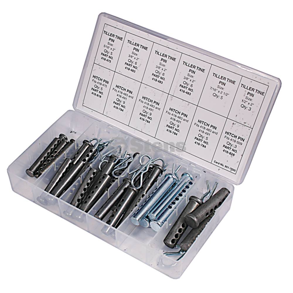 Specifications: Includes: 71 pieces Includes 71 piecesIncludes the following:3 of 1/2" x 2"5 of 5/16" x 2"5 of 7/16" x 2 1/2"18 of 3/8" x 2"3 hitch pin 1/2" x 2"5 hitch pin 5/16" x 2"5 hitch pin 7/16" x 2 1/2"27 hitch pin 3/8" x 2"