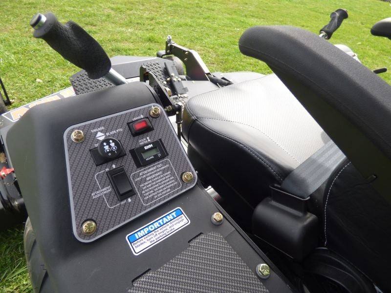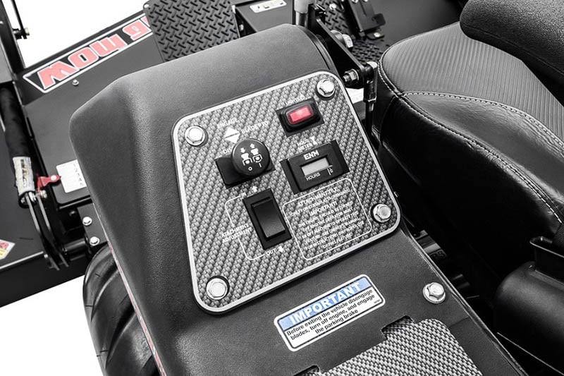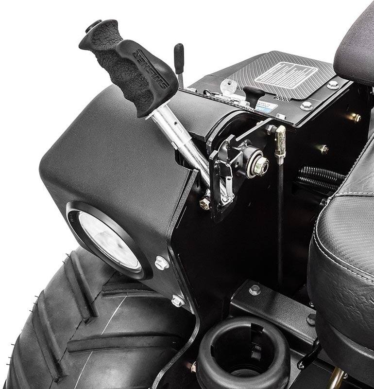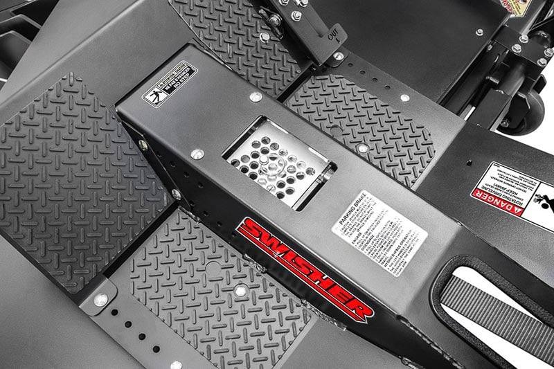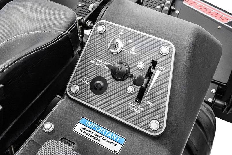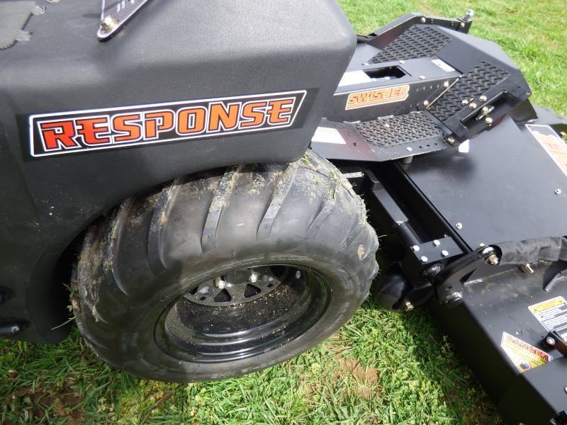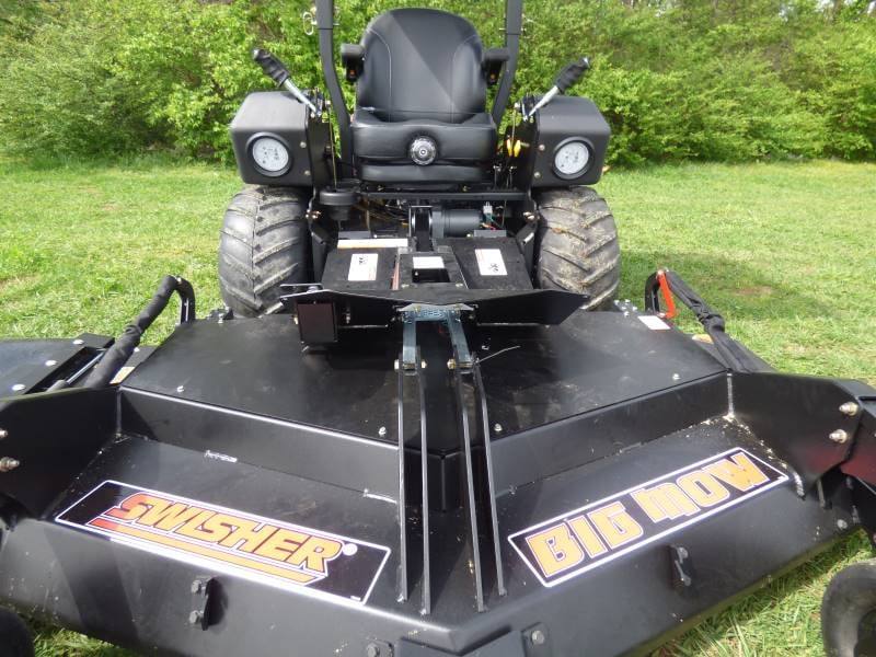 The commercial BIG MOW mower from Swisher is powered by a 28 HP Briggs & Stratton EFI V-Twin engine that comes standard with a suspension seat for a smooth ride and the ergonomic Rapid Response Control System for easy steering.