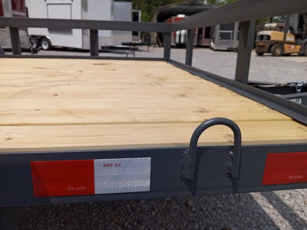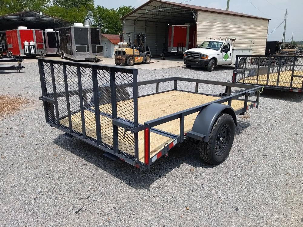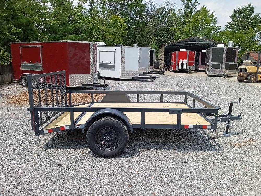 Check out our 6.4 ft. x 10 ft. open utility trailer with easy to load dovetail gate. It features new wheels and tires, commercial axles, trailer jack, pressure treated wood and more.